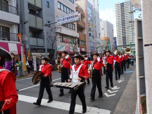 パレードでは、日本大学吹奏楽研究会がマーチングを行い、水素自動車や、商店街のキャラクター「こーた」をはじめ、小松川信用金庫のキャラクター「こまちゃん」や区クリーンエネルギー推進キャラクター「スイソマン」も参加し、大いに賑わいました。